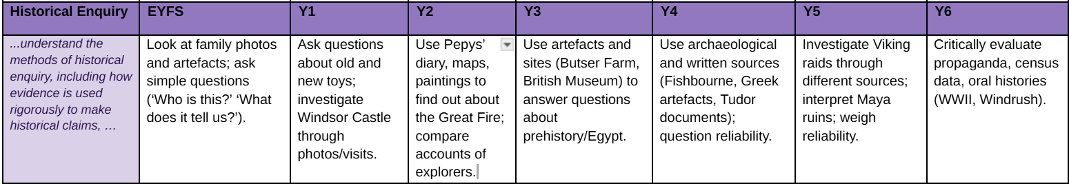 Our curriculum helps children build a strong sense of identity by connecting personal, local, national and global stories. Alongside this, they develop the key skills of a historian: asking thoughtful questions, analysing sources, weighing up evidence and considering different viewpoints.