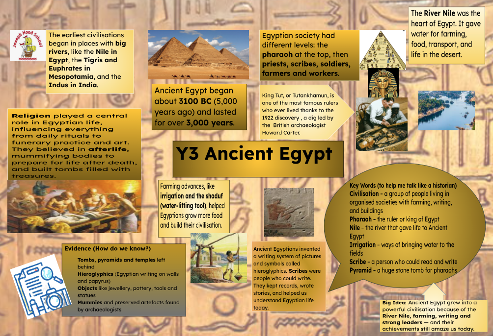Our history curriculum at Joseph Hood is both knowledge-rich and enquiry-led, giving children the tools they need to investigate the past with curiosity and independence. We want every pupil to leave primary school with a secure understanding of how different periods connect and how history has shaped the world we live in today.